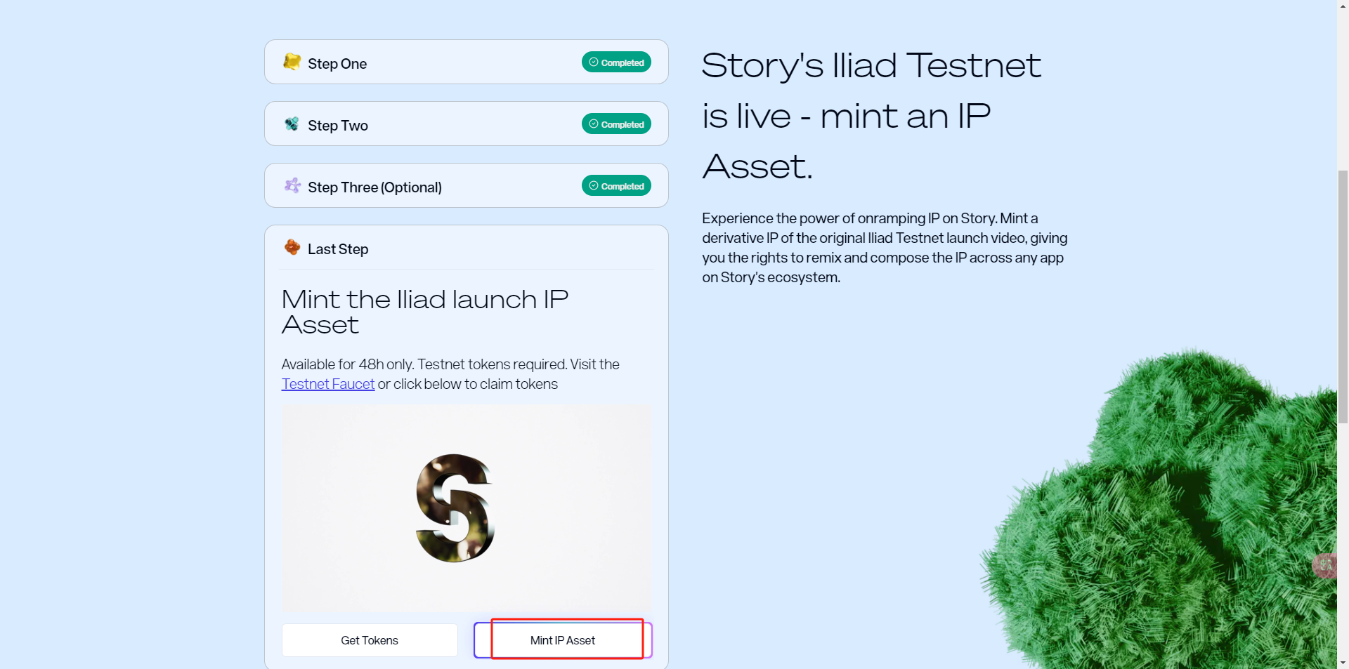 第一个ip资产领取https://mint.story.foundation/三个社交任务做完直接Mint就行