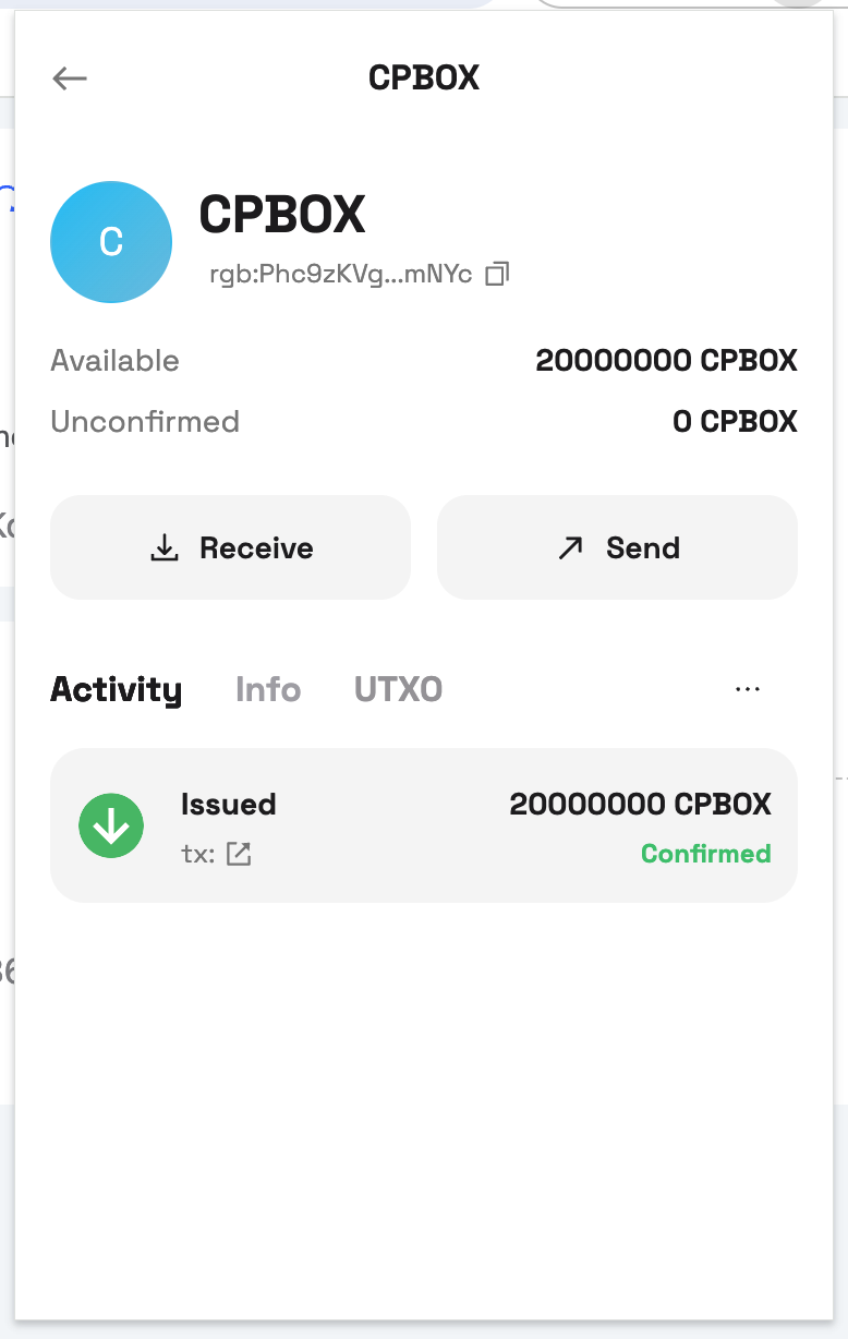 创建RGB20资产,第一次创建,需要支付一笔gas