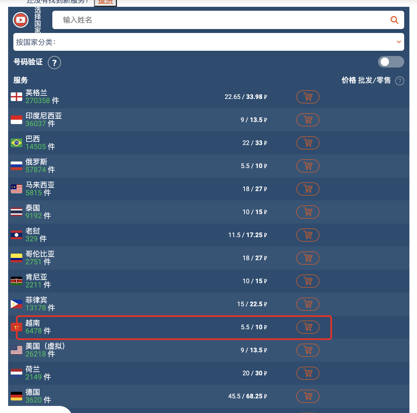 5、任意选择其一,我这里选择 “泰国”(有的国家验证码无法使用就换一个国家),以此为例。点击购买。