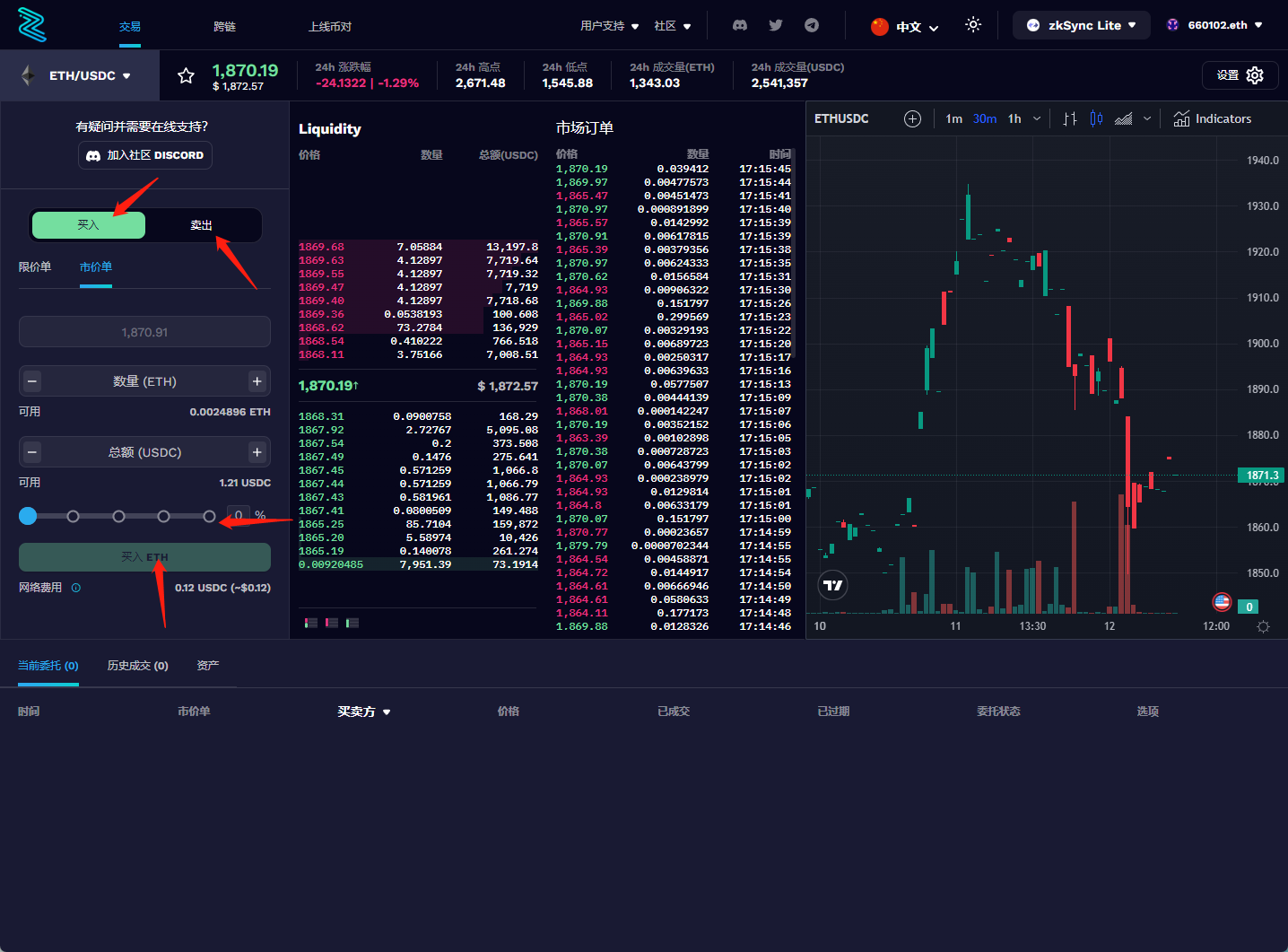 钱包切换至Era网络—登陆钱包—点击Swap—选择ETH和USDC进行兑换—点击Swap—钱包确认兑换