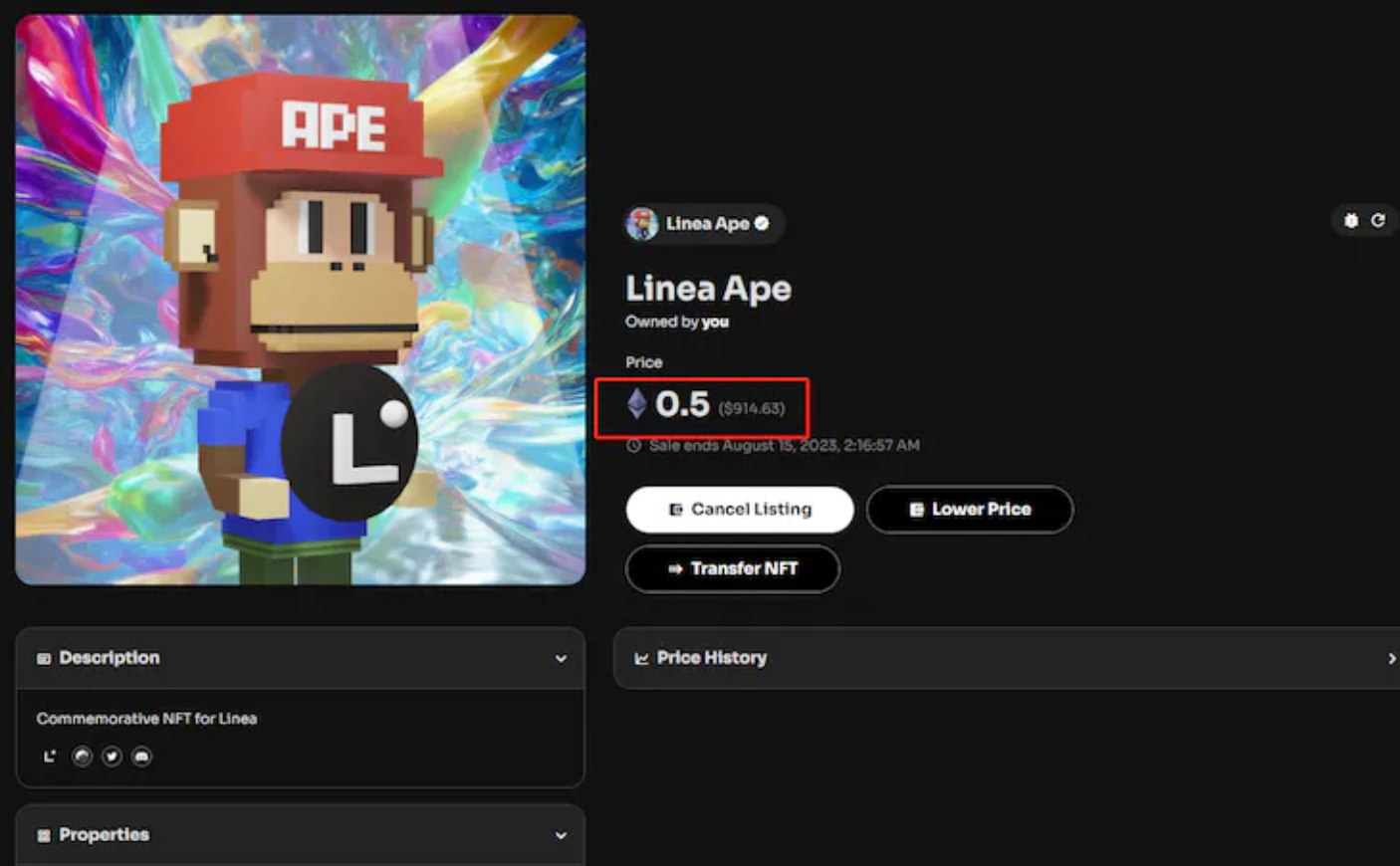 9.右上角点击My NFTs 回到自己的钱包,切换到Linea链后选择一个NFT点击进入详情,然后点击 Transfer NFT